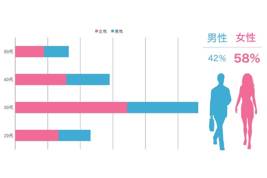 「オミカレ」は女性会員比率が58%と高い割合で、また、30代を中心に利用されているのが特徴でした。
