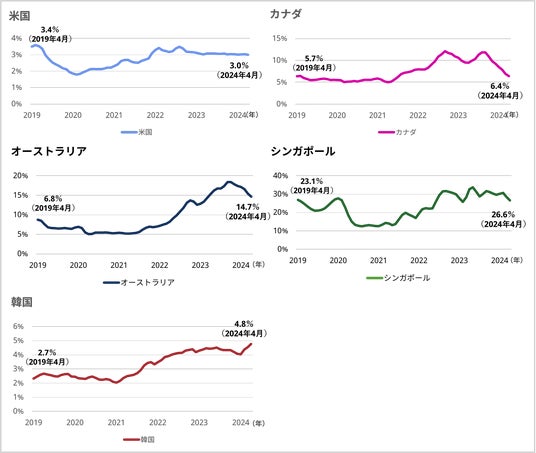 その結果、米国では2019年4月と比較し2024年4月は海外からの仕事検索割合は減少しています。一方、カナダ・オーストラリア・シンガポール・韓国では海外からの仕事検索割合は、2024年4月はコロナ禍前の水準と同等またはそれ以上となっています。