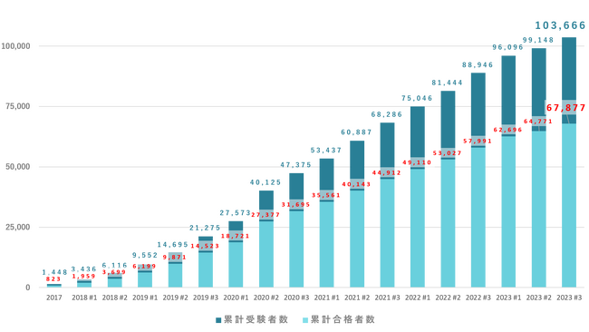 これにより、G検定の累計受験者数は103,666名、累計合格者数は67,877名になりました。