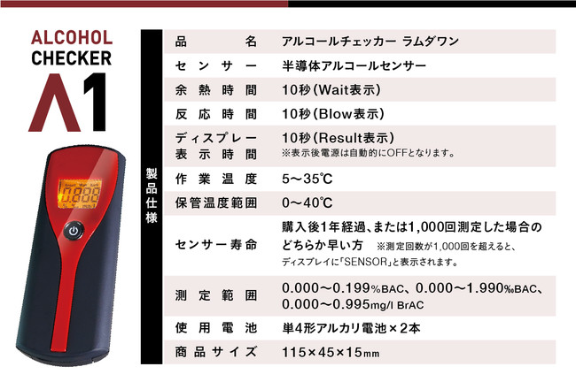 【アルコールチェッカー ラムダワン IGAC01 商品概要】