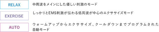 3つのEMSモードを新しく搭載し、お腹、お尻、足まわりの筋肉を刺激します。
