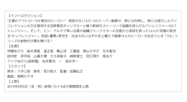 ■Vシネクスト「ルパンレンジャーVSパトレンジャーVSキュウレンジャー」 概要