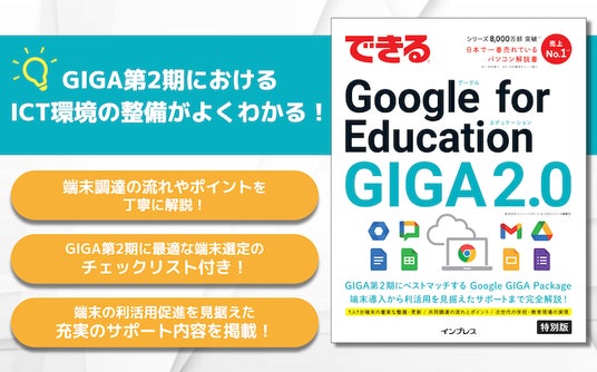 さらに、GIGA第2期で求められる端末の要件を満たす Chromebook(TM) の充実した機能や、さらなるICT利活用を支える Google for Education による充実のサポート内容もご案内。GIGA第2期で目指す学びや働き方のイメージを膨らませ、端末の整備・更新を含む着実なICT利活用の促進に向けたガイドブックとしてご活用いただけます。