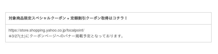 フォーカルポイント株式会社(本社:神奈川県横浜市、代表取締役 恩田英樹 以下弊社)は、フォーカルポイント・ダイレクト Yahoo!ショッピング店にて、現在開催中の「新生活応援キャンペーン2021」について、超PayPay祭グランドフィナーレに合わせて、お得な対象商品限定スペシャルクーポンを配信します。