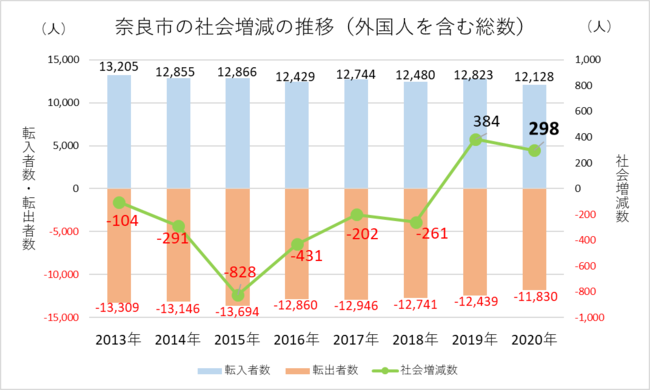 出生率は全国的な傾向と同じく減少しているものの、0~14歳の転入超過数は+357人、共働きで子育てしやすい街ランキング関西第2位、全国第17位など、奈良市が子育て世帯のニーズを把握し実行してきた施策が、一定評価されたものと考えられます