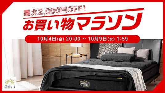 株式会社KURUKURU(本社:東京都中央区銀座、代表取締役:関沢康寛)の寝具ブランド「GOKUMIN」は、2024年の楽天お買い物マラソン期間中、対象製品に使える特別クーポンを配布いたします。2024年10月4日(金)から10月9日(水)までの楽天お買い物マラソン期間中に限り、楽天市場内の「GOKUMIN」公式ストアでのお買い物にご利用いただけます。この特別オファーを通じて、お客様にさらなるお得感を提供し、快適な睡眠環境をご提案いたします。※クーポンの詳しい使用条件や対象商品については、楽天市場内の「GOKUMIN」公式ストアページをご覧ください。