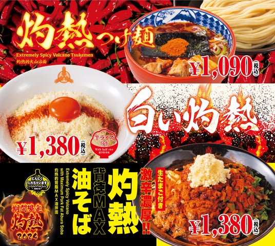 2024年の灼熱シリーズは従来の「灼熱つけ麺」に加えて、新作2商品を販売開始!パワーアップしております。