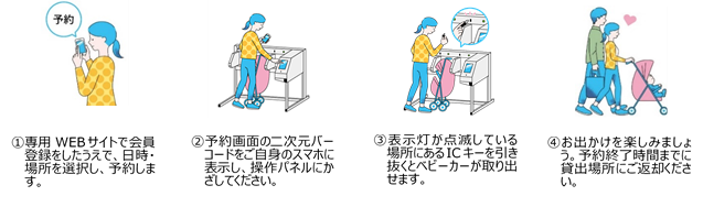 「もっと気軽に子供と外出できる社会を!」をコンセプトに、子育て世帯が子供と気軽に外出できる社会の実現を目的とした、外出先でも便利に利用できる予約可能なベビーカーのレンタルサービスです。観光や旅行の際はもちろん、お買い物やランチなど短時間でも気軽にご利用いただけます。