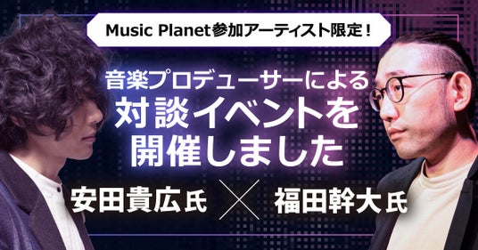 株式会社アプラ(東京都渋谷区、代表取締役:新妻 快介)が運営するMusic Planet(ミュージックプラネット|https://music-planet.jp/ )は、第4弾となる音楽プロデューサーによる対談イベントを開催しました。今回お招きしたのは、ミュージックプラネットでプロデューサーを務める安田貴広氏と福田幹大氏。本イベントはミュージックプラネット参加アーティスト限定で行われ、ここでしか聞けない貴重なお話が飛び交いました。