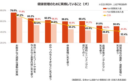 今回の調査から、ペットの健康管理のため、運動や食事など日々の過ごし方に気を配っている飼育者の方の様子が窺えました。大切なうちの子である愛犬とともに、できるだけ長く健やかに生活したいと考えているからこそ健康管理に気を配る飼育者の方が多いのではないでしょうか。