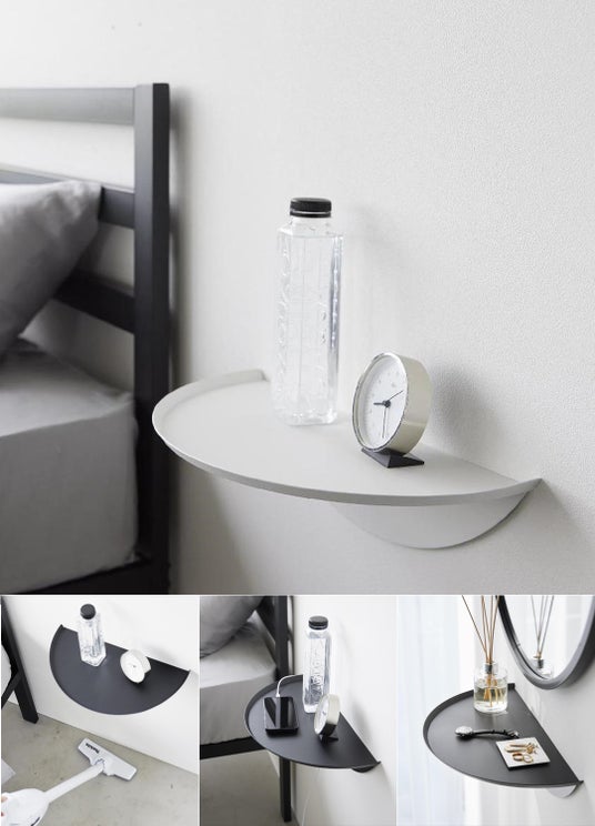 壁の穴が目立ちにくい石こうボードピンで浮かせて取り付けできるサイドテーブル。