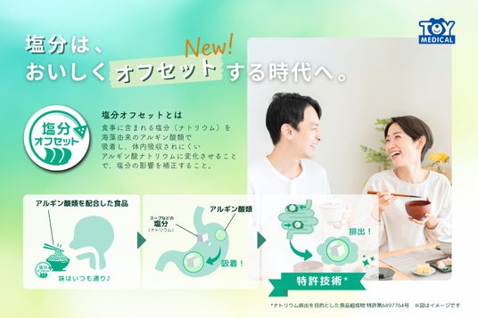 東洋製罐グループホールディングス株式会社(本社:東京都品川区、代表取締役社長:中村琢司、以下「当社」)は、このたび、特許技術※「塩分オフセット技術」を有するスタートアップ、トイメディカル株式会社(本社:熊本県熊本市南区、代表取締役社長:竹下英徳、以下「トイメディカル」)へ出資し、戦略パートナーとして協業を開始しました。当社グループは「長期経営ビジョン2050『未来をつつむ』」において、取り組む領域の一つとして「食と健康」を掲げています。本協業を通じて、“おいしさ”と“健康”の両立に資するソリューションを実用化し、塩分の過剰摂取という世界的な健康課題の解決と、持続可能な未来の暮らしの創出を目指します。