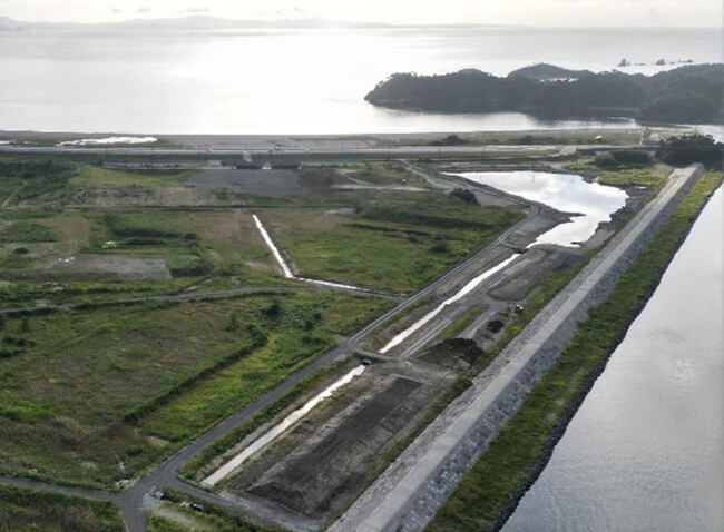 写真:人工干潟づくりが始まった東松島市の湿地。2022年9月の様子 (C)東松島市