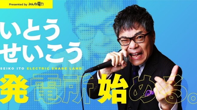 「アーティスト電力」は、作家でクリエイターのいとうせいこうさんの「いまは中央集権ではなく自律分散の時代であり、太陽光パネルを分割してみんなで持ち合うことでエネルギーも分散化できる」というアイデアからスタートしました。「電気を面白く選ぶ体験を広めたい」という思いと共に、2021年4月に第1弾となる「いとうせいこう発電所」をご家庭向けに開始しました。みんな電力では、下記のアーティスト電力を提供しています。