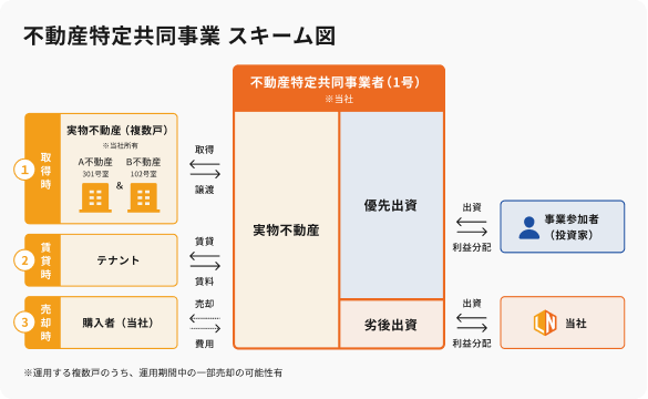 優先劣後割合:投資家(優先出資部分)89.99%、当社(劣後出資部分)10.01%
