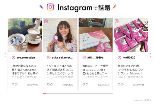 続いて「risou no Coffee」の新規顧客LPにおいてもUGCを掲載し、同様の運用を行うことでCVR1.1倍の改善に成功。今後は、高いパフォーマンスが期待出来そうなUGCを継続的に生成しながら、継続的に運用を行い更なる成果向上を目指していく予定となっています。