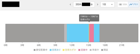 空席あり、空席わずか、混雑中、貸切営業中、準備中、閉店