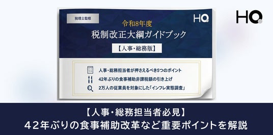 「福利厚生をコストから投資へ」を掲げる株式会社HQ(読み:エイチキュー、本社:東京都千代田区、代表取締役:坂本祥二)は、2025年12月19日に公表された「令和8年度税制改正大綱」のうち、人事・総務担当者が押さえるべきポイントをまとめた「【税理士監修】令和8年度 税制改正大綱ガイドブック【人事・総務版】」を公開しました。