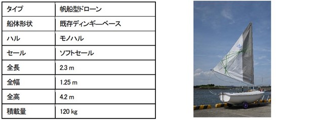 エバーブルーテクノロジーズが開発する、帆船型ドローンの船体スペック