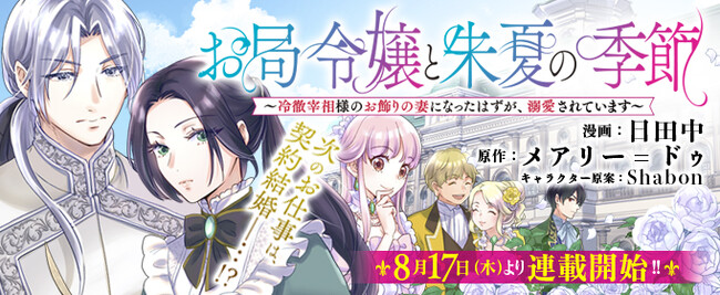 『お局令嬢と朱夏の季節 ~冷徹宰相様のお飾りの妻になったはずが、溺愛されています~』の連載が、弊社初の1・2話同時掲載として本日8月17日(木)18時より開始となりました。