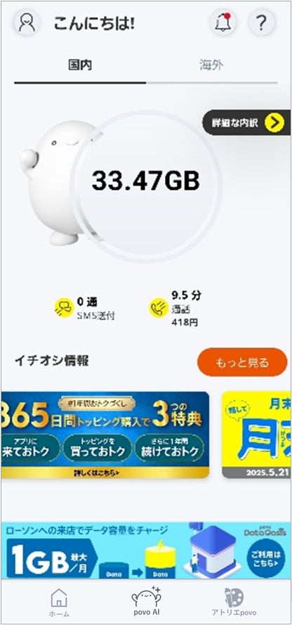 povoはオンラインの強みを生かしたシンプル・スピーディーな手続きで、基本料金0円でデータ通信や通話放題などのオプションをお客さま一人ひとりのニーズに応じて自由にカスタマイズできる「トッピング」を活用し、一人ひとりにパーソナライズされたサービスを提供してきました。