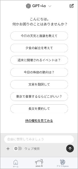 KDDI、沖縄セルラーは2025年7月23日からすべてのpovo2.0ユーザーに、povo2.0アプリ内でChatGPTやPerplexityのAIモデルをご利用いただける「povo AI」を無料で提供開始します。povo2.0をご契約中のお客さまは、GPT-4oやPerplexity Sonar Proなどの高機能なAIモデルを、回数の制限なくご利用いただけます。