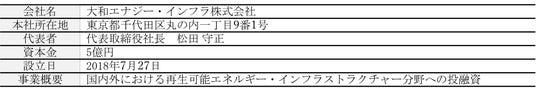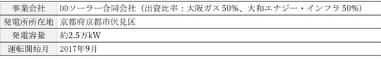 大阪ガス株式会社(代表取締役社長:藤原 正隆、以下「大阪ガス」)と株式会社大和証券グループ本社(以下「大和証券グループ本社」)の100%子会社である大和エナジー・インフラ株式会社(代表取締役社長:松田 守正、以下「大和エナジー・インフラ」)は、以前より、再生可能エネルギー(以下「再エネ」)事業の取得および開発の共同検討(以下「本検討」)を進めてきました。本日、両社は本検討に関する覚書を締結するとともに、共同事業の初号案件として、両社が共同出資する合同会社※1を通じて、京都府京都市に位置する稼働済太陽光発電所(2017年9月商業運転開始、発電容量約2.5万kW、以下「本発電所」)を取得しました。