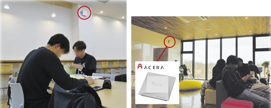 学生食堂や研究・実習棟のフリースペースにACERAを設置