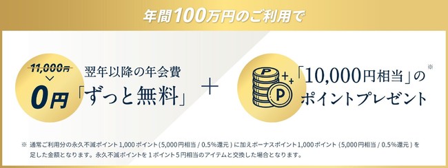 ※ 年間ご利用金額100万円以上で翌年以降永年無料