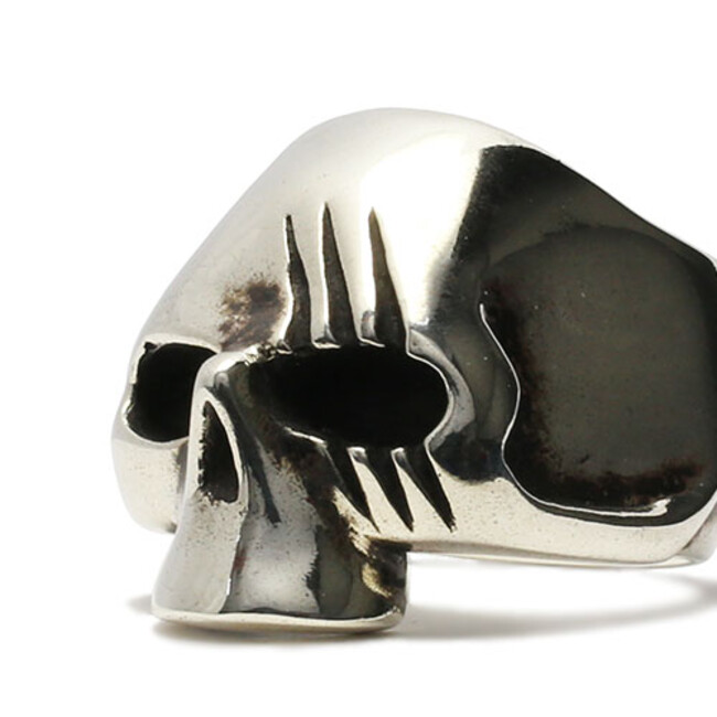 JAM HOME MADEの代表作の一つ、レボリューションスカルリング。アクセサリーにおいて、スカルの意味するところは「メメント・モリ」。直訳すると「死を憶え」、意訳すると死生観。いずれ必ず来てしまう死があるのだから、より今を大切にすること、とも取れます。