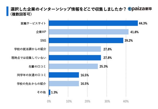 また、学生の情報収集方法については、就職サービスサイト(1位)、企業HP(2位)、SNS(3位)がいずれも高い結果となりました。自社のインターンシップについて、意欲の高い学生に訴求するためには早期からこうした方法での情報発信が必須です。