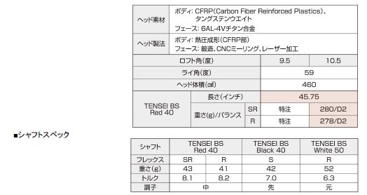 ■メーカー希望小売価格(税込) : TENSEI BS Red 40シャフト(カーボン)仕様 96,800円