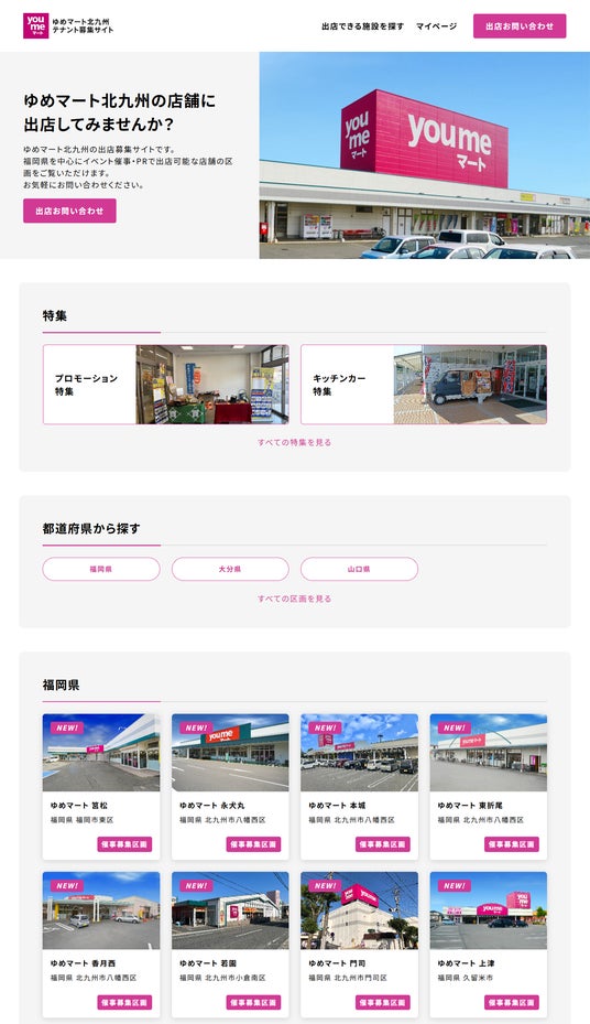 ▼「ゆめマート北九州テナント募集サイト」の画面イメージ