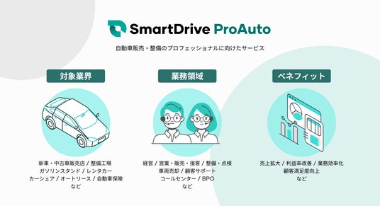 株式会社スマートドライブ(本社所在地:東京都千代田区、代表取締役:北川 烈、以下「当社」)は、自動車販売・整備のプロフェッショナルに向けたサービスシリーズ「SmartDrive ProAuto」リリースを発表します。