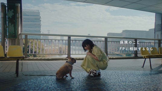 とある街中の風景。『念力が…篇』同様、保険のことをファイナンシャルプランナー(FP)に相談したいと、無料FP相談サービス「マネードクター」を予約しようと考えながら、普段のように街を歩く広瀬さん演じる女性。すると、道にたたずむ一匹の犬と目が合い、突然何かを思い出してそわそわ、もじもじする広瀬さんと、じーっとまっすぐ見つめる謎の犬。