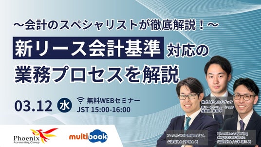 海外拠点を持つ企業の経営管理を支援するグローバルクラウドERPサービス「multibook(マルチブック)」を提供する株式会社マルチブック(東京都品川区、代表取締役CEO:渡部 学)は、フェニックス国際税理士法人(東京都港区、共同創業者・グループ代表:伊藤 哲男 氏)と共同で、経理・財務部門必見のWebセミナー「~会計のスペシャリストが徹底解説!~新リース会計基準対応の業務プロセスを解説」を開催いたします。