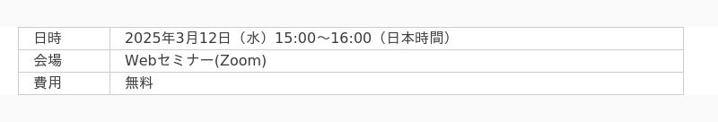 開催日時:2025年3月12日(水)15:00~16:00(日本時間)