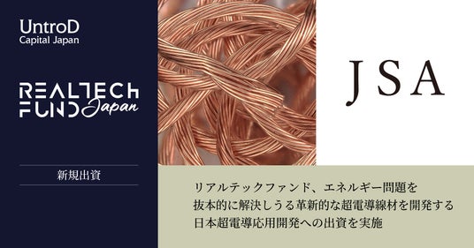 UntroD Capital Japan株式会社(所在地:東京都港区、代表:永田 暁彦)が運営するリアルテックファンド*は、超電導技術スタートアップである日本超電導応用開発株式会社(本社:神奈川県茅ヶ崎市、代表取締役CEO:大坪 正人、以下「JSA」)へ投資を実施したことをお知らせ致します。JSAは今回の調達資金をもとに、各種応用機器向け超電導モジュールコイルの量産化に向けた研究開発及び製造体制の強化を進めて参ります。