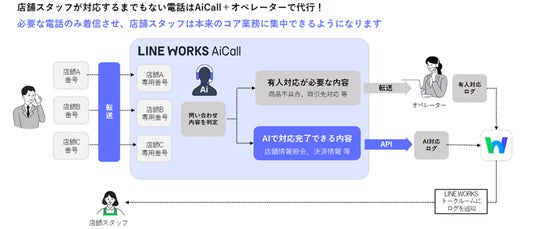 LINE WORKSは、AIによる自動化で電話対応の課題解決を実現する「LINE WORKS AiCall」や、高速での文書データ化やデータ入力の自動化で企業内のデジタル化・データ活用を促進する「LINE WORKS OCR」など、AIソリューションをラインナップし、企業生産性向上に向けて企業ごとのニーズや環境に合わせた開発を行っています。