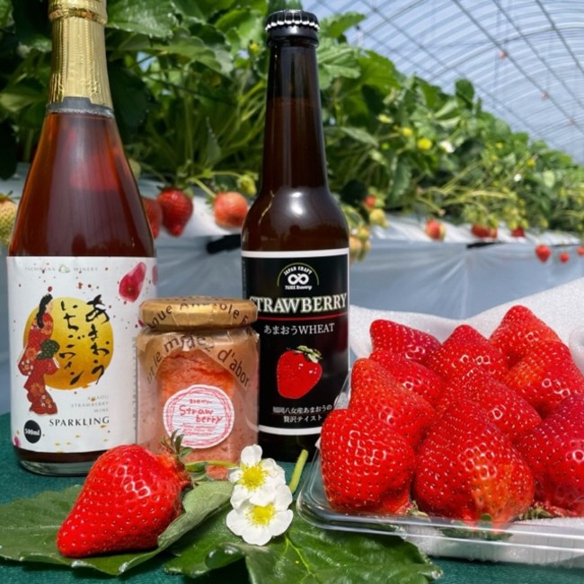 〔内 容〕 当日は数量限定で「八女産いちご」をプレゼントします。他にも、いちごを使ったお菓子、あまおうスパークリングワイン、いちごのクラフトビール等を取り揃えております。みなさまのご来店お待ちしております。