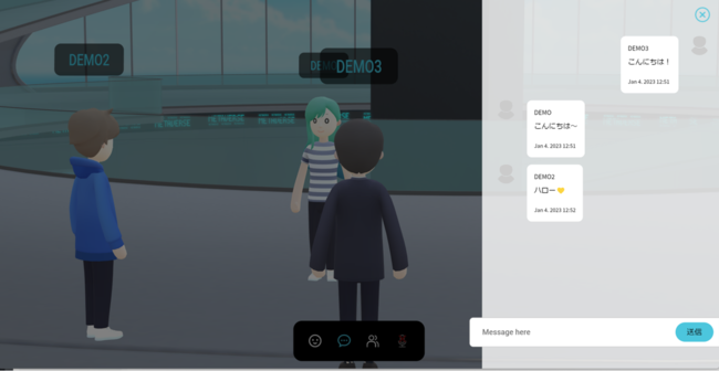アバターやバーチャル空間の移動、チャット、アカウント登録、ログインなどを標準搭載しています。