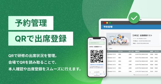 研修会場や学校の教室でQRコード(※)を読み取ることで、本人確認や出席登録を実施できます。研修やテストなどの出席管理もスムーズに行えるようになりました。