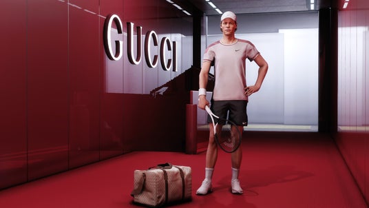 グッチは2Kとのコラボレーションにより、TopSpin 2K25で「グッチ テニス コレクション」を展開。また、このゲームの新たなプロ選手として世界ランキング1位のヤニック・シナーが登場し、グッチをテーマにデザインされたテニスコートで「グッチ テニス カップ」が開催されます。