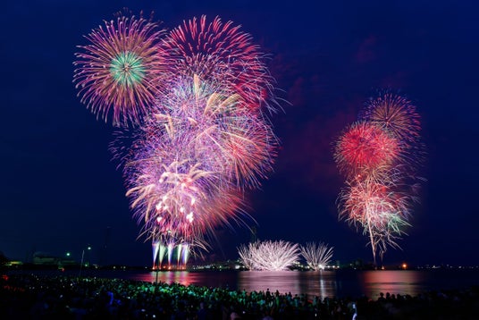 5年ぶりの復活!約5,000発の花火が夜空を彩ります。観覧場所からわずか300mの台船から打ち上げられる花火は迫力満点。種類豊富に趣向を凝らした花火が豪快に炸裂する様は圧巻です。他ではなかなか見られない尺玉(10号玉)も打ち上げます。