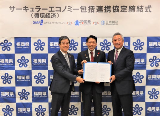 三井住友ファイナンス&リース株式会社(代表取締役社長:今枝 哲郎、以下「SMFL」)は、福岡県と株式会社日本総合研究所(以下「日本総合研究所」)の三者間で、「サーキュラーエコノミーの推進に関する包括連携協定」(以下「本協定」)を締結したことをお知らせします。