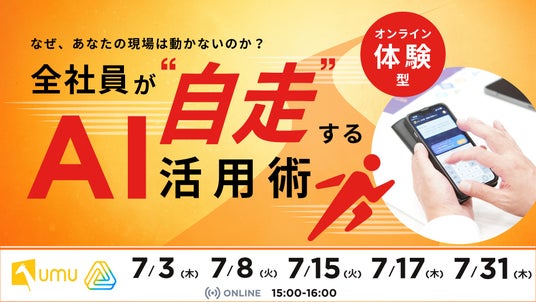 パフォーマンス向上を支援するAI学習プラットフォーム「UMU(ユーム)」を展開するユームテクノロジージャパン株式会社(本社:東京都新宿区、代表取締役:松田しゅう平 、以下 ユームテクノロジージャパン)は、企業のAI活用を加速させるための無料オンラインセミナー「【AI時代の実践的AI活用セミナー】なぜ、あなたの現場は動かないのか?全社員が“自走“するAI活用術」を2025年7月に定期開催いたします。
