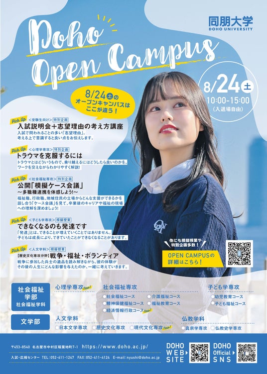 8月24日(土)開催の同朋大学オープンキャンパスの企画案内です。