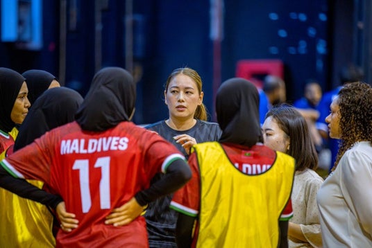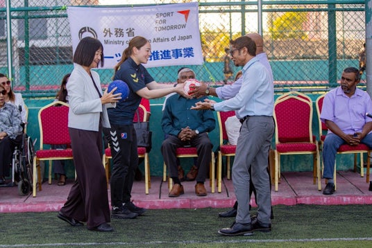 その引渡式が4月7日にモルディブで行われ、日本協会は元女子日本代表・おりひめジャパンのセンタープレーヤーとして活躍した大山真奈さんを派遣しました。
