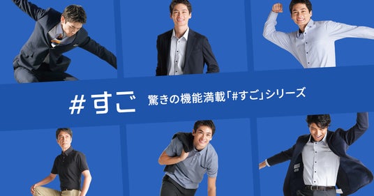 当社商品の機能性の高さを訴求する「#すご」シリーズ。ジャケットやスラックス、ポロシャツなどの各アイテムにお客様からの要望が多い機能を備え、着心地やコスパの高さを打ち出した商品シリーズです。