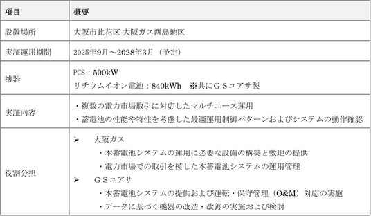 池システム(以下「本蓄電池システム」)を大阪ガス敷地内に設置し、本日、共同実証